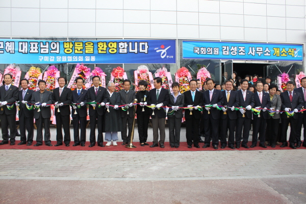 김성조 국회 기획재정위원장(한나라당 구미갑)이 14일 지역민과의 소통을 위해 지역사무실을 이전 개소식을 가졌다.