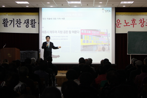 세종시 수정안 부결과 구미지역경제가 나아갈 길이란 주제로 15일 노인대학에서 실시한 특강은 바쁜 일정 속에서도 시간을 쪼개가며 지역민들에게 지역의 현안을 제대로 알리기 위한 김 의원만의 소통 방법이다.