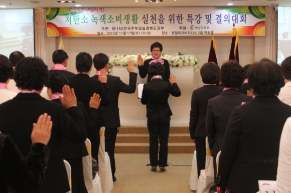 저탄소 녹색소비생활실천을 위한 2010 전국주부교실 경북지도자 실천결의대회가 17일 구미시 파크호텔에서 열렸다.
