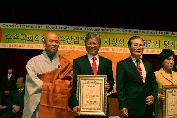 이철우 국회의원이 23일 국정감사NGO 모니터단 으로부터 2010년도 국정감사 우수의원상을 수상했다.