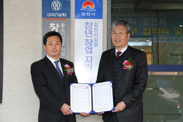 이에 따라 23일 본교 창업보육센터에서 열린 업무협약식 및 현판식을 통해 구미1대학 창업보육센터(센터장 서영택)는 1년간 김천시 소재 35세 미만의 청년 창업자를 발굴하여 예비창업자를 육성하는 사업을 진행한다.
