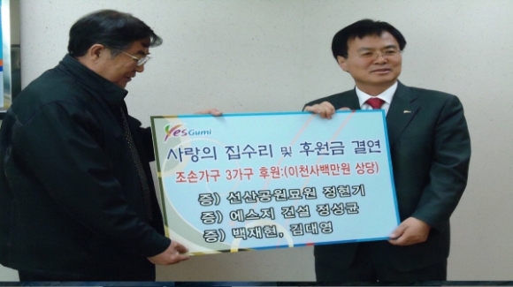 또 백재현(구미경찰서 광역수사대 경사), 에스지건설, 개인사업자 김대영, 김재영, 배기태씨 등 5명은 조손가정 3가구에 대해 12월부터 1가구당 매월20~30만원, 총840만원상당의 후원금을 지원하기로 약속했다.