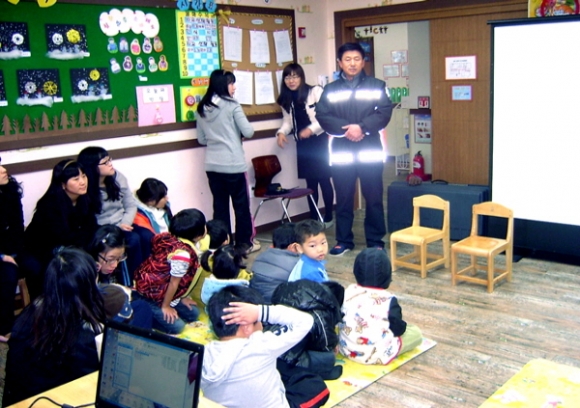 안전교육에서는 겨울철 안전사고 방지교육, 소화기 사용법, 심폐소생술 교육 및 화재 시 가장 기본 대응책인 119신고요령 및 대피요령을 배우며 물소화기 체험을 통해 어린이들이 소화기를 현장에서 직접 활용해 볼 수 있는 기회도 주어졌다.