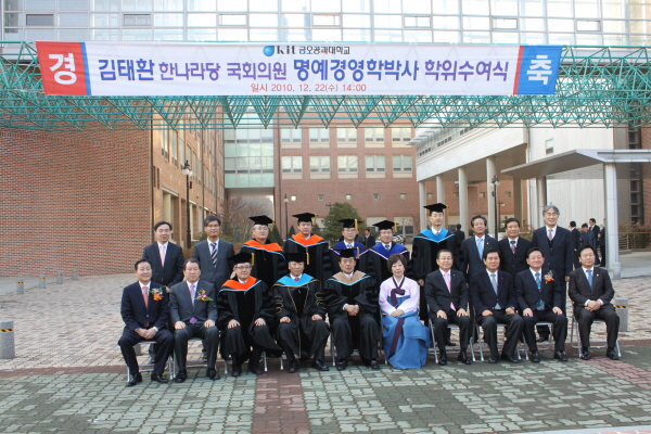 김태환 국회의원이 22일 금오공과대학교 대학원에서 명예경영학박사 학위를 받았다.