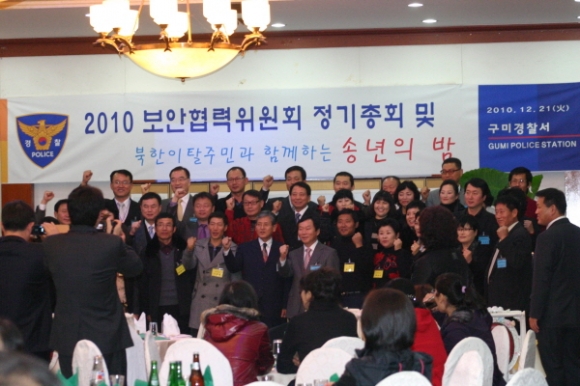 구미경찰서(총경 김동영)는 21일 칠곡군 그린웨딩 뷔페에서 북한이탈주민과 함께하는 송년의 밤 행사를 가졌다.