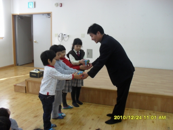 이날 전달된 20만원의 성금은 이화유치원 꼬마 원생들이 우유팩으로 직접만든 개인저금통에 한푼 두푼 모은 것으로 그 어떤 기탁금보다도 더 값진 이웃사랑으로 다가왔다.