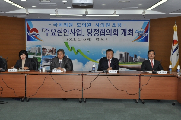 김천시가 년초부터 지역 현안 챙기기에 나섰다. 시는 이를 위해 4일 국회의원, 도의원, 시의원을 초청한 가운데 시청 제2회의실에서 현안사업과 국도비 건의사업 등에 대한 설명회를 가졌다.