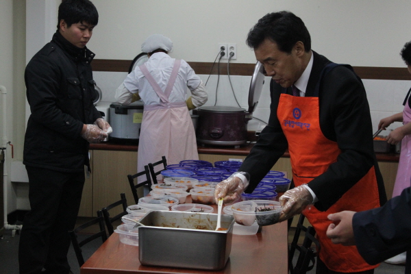 » 결식어르신을 위한 반찬담기 봉사활동 중인 손 대표 |