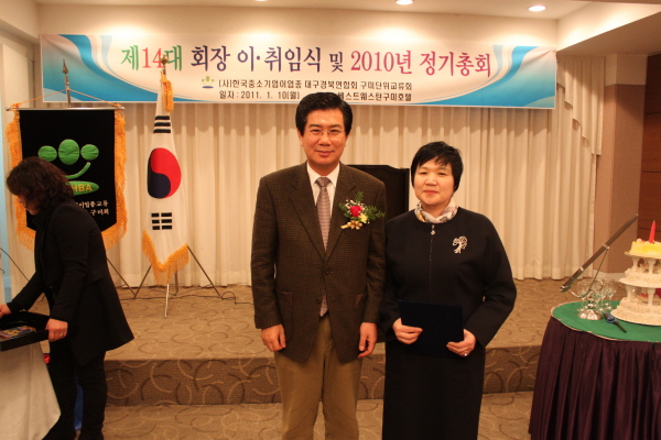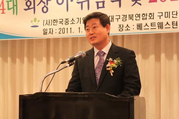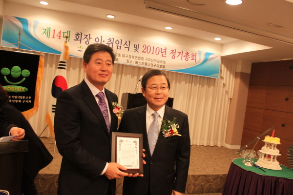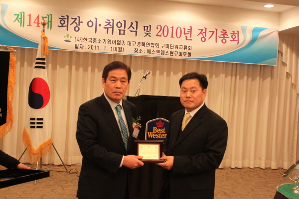 10일 구미시 공단동 베스트웨스턴 호텔에서 열린 사)중소기업이업종 대구경북연합회 구미단위교류회 정기총회 및 14대 회장 이.취임식에서 백광흠 신임 회장은 “미력하나마 있는 힘을 다하고 회원들의 도움을 받아 회원들을 결속 시키고 한층 더 발전하는 교류회가 되도록 최선을 다하겠다.”고 소감을 밝혔다.