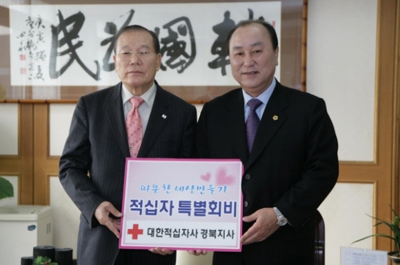 이상효 경상북도의회 의장은 14일 의장실에서 신기옥 대한적십자사 경북지사 회장에게 2011년도 특별회비를 전달했다.