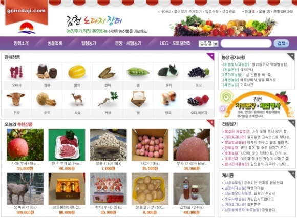 농산물 중개 쇼핑몰인 “김천 노다지장터”는 신선하고 우수한 농산물 유통마진을 최소화해 농가소득을 극대화하는 사이버장터다. 온ㆍ 오프라인을 통해 140여 입점농가의 농장 소개와 홈페이지 주소, 각 농장별로 생산, 판매되는 주요농산물이 수록된 팜플렛 7천5백부를 제작, 서울, 부산 등 출향인사 1천300여명을 비롯한 도시소비자 및 내방객에게 배부했다.