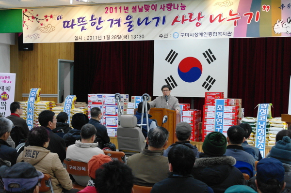 구미시장애인종합복지관(조상배 관장)은 28일 설을 앞두고 ‘따뜻한 겨울나기 사랑나눔’행사를 가졌다.
