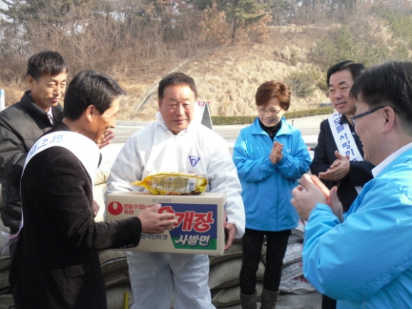이어 남구미 초소를 방문한 이판돌 지회장은 “ 구제역 방제에 최선을 다해 달라”면서,컵라면 등으로 식사를 대신하는 근무자들의 고충을 위로 했다