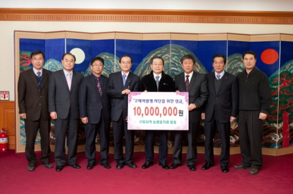 농협중앙회 구미시지부(지부장 황보걸)가 구제역 확산방지와 조기종식을 위해 써달라며 1000만원의 성금을 구미시에 전달했다.