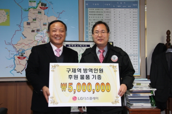 LG디스플레이가 구제역으로 어려움을 겪고 있는 방역관리 인원 및 축산민들을 위해 힘을 보탰다.