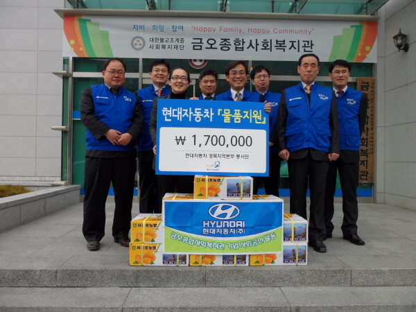 현대자동차(주)경북지역본부(본부장 오영춘) 10일 설을 맞아 금오종합사회복지관(관장 법등)에 일백 칠십만원 상당의 상품권과 과일을 전달했다.