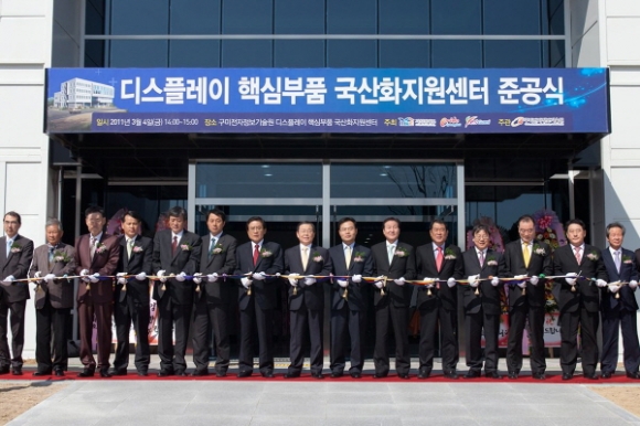 구미전자정보기술원(원장 이종형)이 4일 단지 내에 위치한 국산화 지원센터에서 디스플레이 핵심부품 국산화지원센터(이하 국산화지원센터) 준공식을 가졌다.