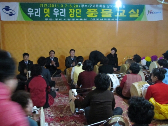 구미시 상모사곡동(동장 이성칠)은 7일 구미문화원분원 풍물연습장에서 평생교육원 상모사곡동 회원 30여명이 참석한 가운데 우리가락 우리 멋 중 구미의 대표가락인 무을풍물을 주제로 <풍물교실>을 주관하고, 개강식을 가졌다.