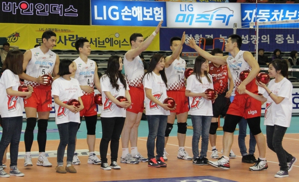 한편 이날 경기는 LIG배구단이 우리캐피탈을 세트 스코어 3:0으로 완승하고 플레이오프 진출을 확정했으며, 구미1대학의 날을 기념하는 선수 팬 사인회도 열어 많은 호응을 얻었다.