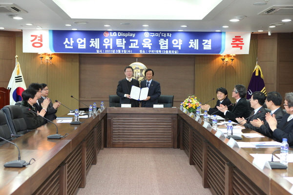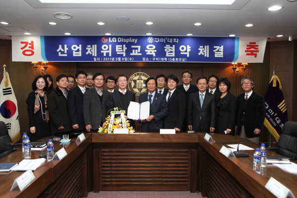 정 총장은 환영사를 통해 “첨단 LCD 산업을 선도하는 초일류 기업인 LG 디스플레이와 협약식을 맺게 된 것은 전문 인력을 양성하는 구미1대학으로써 그 위상을 높일 수 있는 매우 기쁜 일”이라고 소감을 밝혔다.
