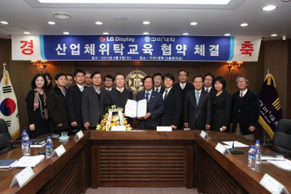 구미1대학(총장 정창주)은 9일 본관 3층 회의실에서 디지털 디스플레이 분야 글로벌 기업인 LG Display와 산업체위탁교육 협약식을 체결했다.