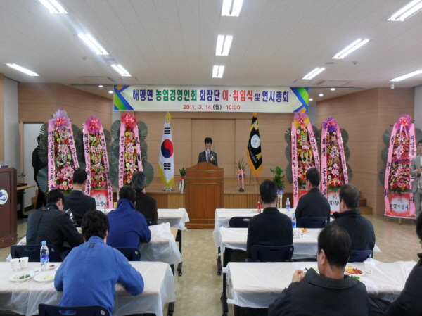 농업경영인 구미시연합회 해평면회는 14일 종합복지회관 2층 강당에서 면회장 이․취임식을 가졌다.