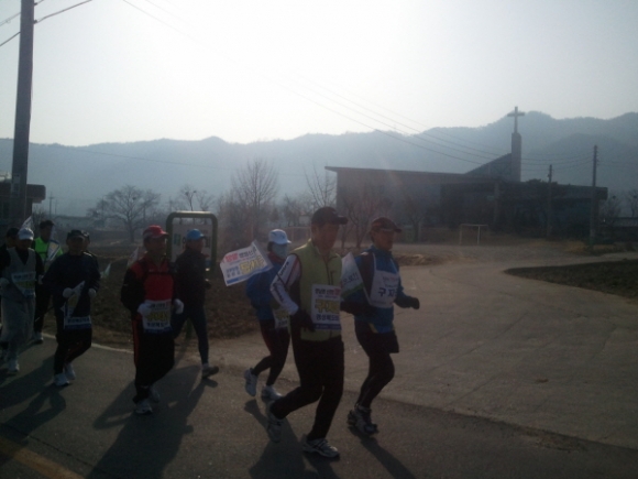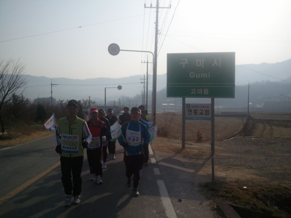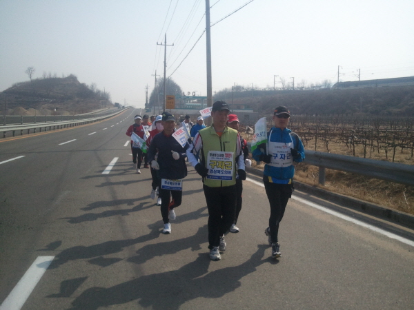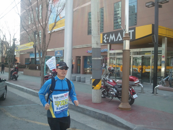 구미출신 경북도의회 구자근 의원이 3월9일부터 3월 27일까지 19일 동안 '신공항 밀양유치를 염원'하는 19일간의 마라톤 대장정에 나선 구자근 의원이 구미시를 벗어나고 있다.