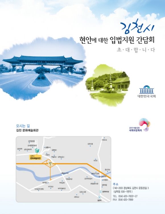 간담회에서는 김천시의 주요현안인 <혁신도시 조성 촉진 및 지원을 위한 입법과제>와 <관광지 개발 및 지원을 위한 입법과제>를 주제로 지역전문가·지역주민들이 함께 참여한 가운데 대해 논의하게 된다.