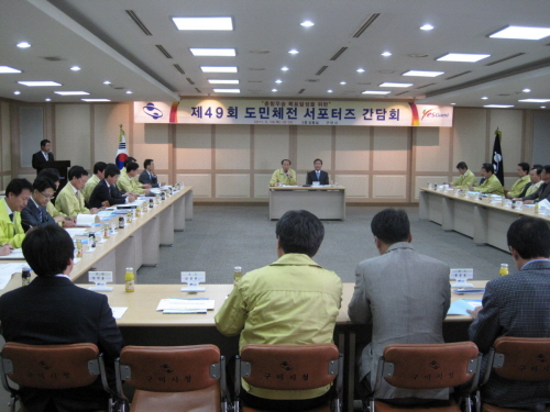 구미시는 ‘제49회 도민체전 종합우승 달성’을 위해 19일 3층 상황실에서 도민체전 서포터즈 단장 및 간사 간담회를 가졌다.