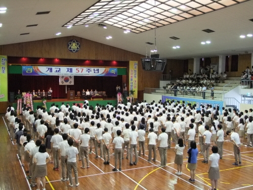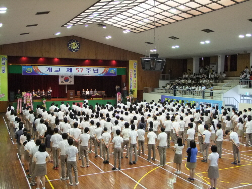 개식사를 시작으로 감사패전달식, 자랑스러운 교사 표창, 학생에 대한 각종 시상, 장학금 전달 순으로 진행된 기념식에서 최돈호 교장은 "