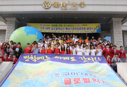 구미1대학(총장 정창주)은 지난 15일 LIG그레이터스 배구단(구단주 구자준)이 참여한 가운데 ‘2011 글로벌학기 발대식’을 가졌다