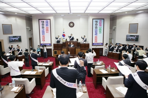 <사진/ 대구 취수원 구미이전 반대 결의문을 채택한 구미시의회>
