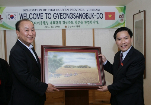 이 상효 경북도의회 의장은 12일 경주에서 친선 교류 및 경주세계문화 엑스포를 관람하기 위해 내한한 베트남 타이응웬성 대표단(단장 부 홍 박타이응웬성 인민의회 의장)을 접견하고, 경북도와 타이응웬성 간의 교류증진 방안에 대하여 폭넓은 의견을 교환했다.